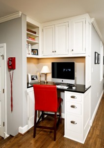 Some of us are lucky enough to have a separate room for an office. Others carve out space in a closet or the kitchen. I, have neither! However, I was once blessed with an entire room for my office when I ran my business from my home. But if I had to do it all over again, I’d go with the “nook” option. Either in a kitchen, hallway landing, or perhaps a closet (which is nice since “out of sight, out of mind” rings true when company is coming!!)
