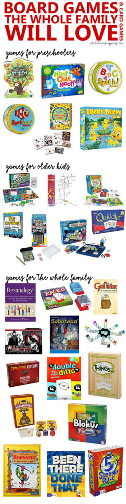 Do you have any favorite games you like to play with your family? Leave a comment and let me know! We love that board games (and card games!) allow us to spend time bonding together. It is such a great chance to teach our kids some of the hard life lessons like fairness and not always being the best because those are things I want them to learn at home, in a loving environment.