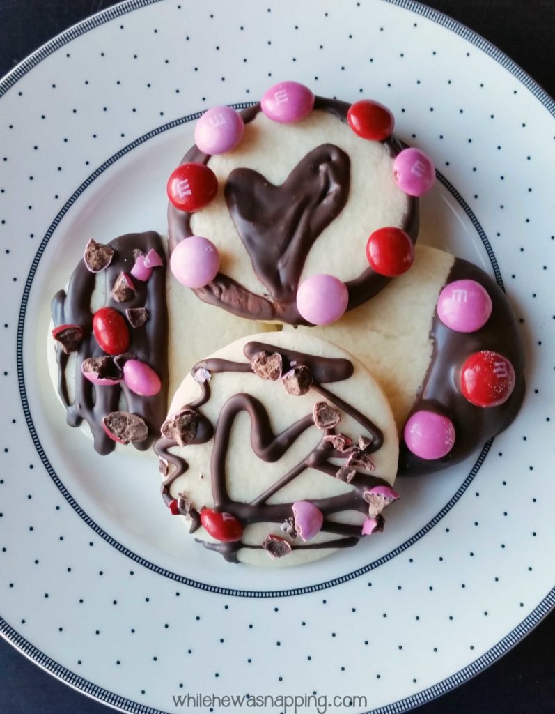 Valentine’s Day has never been a holiday just about romantic love for me. Growing up, my mom always made sure we knew that we were loved and that, in later years, relationship status didn’t matter on Valentine’s Day. It was a day to express your love and gratitude for everyone who was special to you. And that’s something I fully intend on passing on to my kids. We are tightening the budget around here and so that means homemade Valentines this year. Since Valentine’s Day falls on Sunday and we will be going to church, Big J asked if we could make something for his Primary teacher. He’s had the same teacher for the last three years and he adores her. I headed out to Walmart and picked up the new M&M’s® Strawberry and decided to make some Dipped Strawberry Sugar Cookies to show his teacher that we are so thankful for the time and effort she puts into teaching our hooligan son every week and that he really does love her.