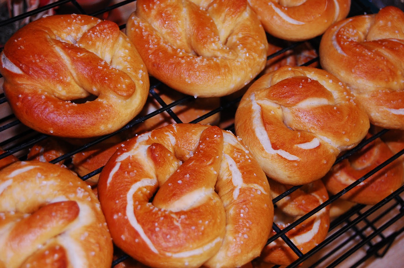 Dissolve yeast in 1/8 cup warm water. Add remaining ingredients and beat until smooth. Kneed until smooth. Sometimes I just throw the stuff in the bread maker on the dough cycle… a lot less arm work. Optional: Let dough rise in an ungreased bowl, uncovered, for 1 hour. Divide into 12 pieces and shape into pretzels.