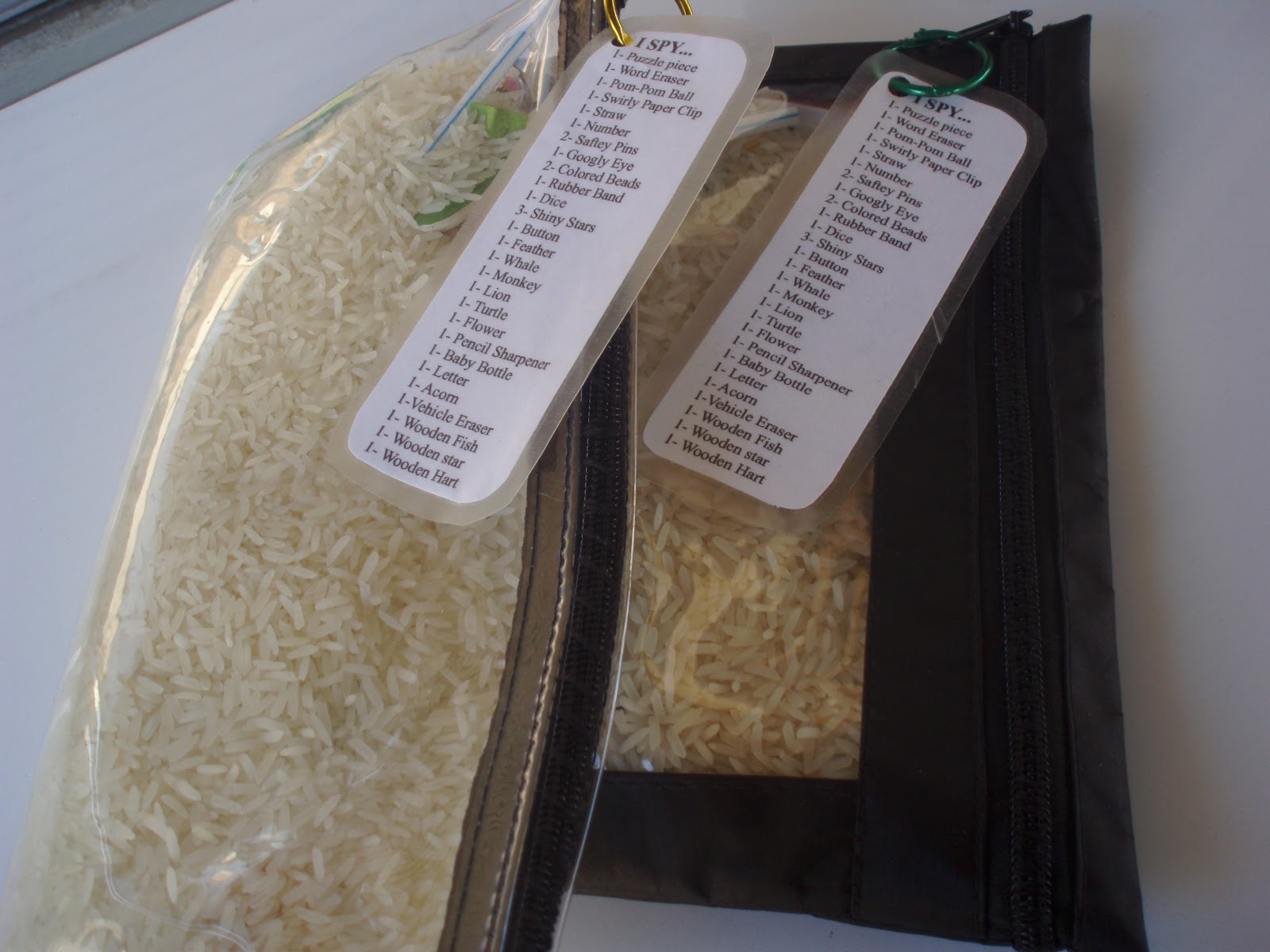 Here is a fantastic idea! I found the concept over at A Girl and a Glue Gun. She goes crazy about back-to-school like I do, and used some of those pencil pouches to make an I Spy bag. I was co-in-charge of our Super Saturday and this was one of our crafts. My Monkey is too little for the actual I Spy game, but he LOVES to look at all the stuff inside the bag. I actually found some little backpack clear vinyl things at the Dollar Store that fit in his hands better than the pencil pouch and that’s Little Monkey’s I Spy bag. They originally had erasers in them, but they put those in their I Spy bags they made at Super Saturday. I put in some random things, filled it with rice (for some reason my mom had a ton of rice, and she’s allergic to it… so, I Spy bag filler it became). Make sure you sew up the zipper and Voila! What a great little travel companion for your little travel companions!