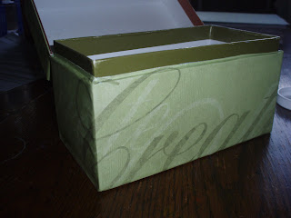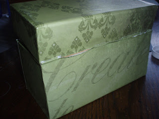 I laid down a coat of Modge Podge on the box and then postitioned my paper on top. Press down firmly, especially around the edges. Let dry. You could also do a layer of Modge Podge on top of the paper, but I like the finish matte and all I have is glossy Modge Podge. So I skipped this step. Repeat with all the sides, until your box is completely covered. I didn’t cover the bottom, but you totally could.