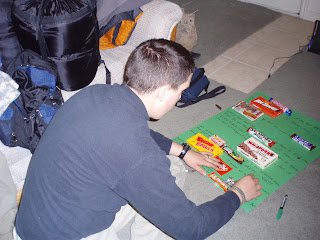 4)  Write out your letter on the poster board with permanent ink.  Tape or glue the candies where they are supposed to go in your letter.