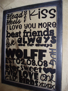 Ok, this is also a post that I did back around September or so… But, my family is out of town so I don’t have a whole heck of a lot to work with as far as content for new posts.  This would, however, make a great Valentine’s Day gift.  What better way to give your sweetheart a little shout out than with a piece of art?  This is something that will last for years and it’s very “in” right now.  Here’s the how to…