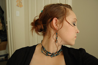 So, have you ever needed some jewelry for an event or occasion, but don’t have the budget to go out and get some? A couple years ago, My Mr Right was working for the Army. It was a civilian position, but he was required to wear his ACU’s to work (the camouflage uniforms). And, because he had this job, he was also required to attend the Annual Military Ball. At $20/ticket, we were less than thrilled. However, it gave me the excuse to buy a new dress and shoes. I spent thriftily (dress $20 and shoes $10) and borrowed what I could, but I didn’t have any jewelry and could find any I liked in my price range. I walked down the beading aisle at Wal-Mart and the love affair began. I love to make my own jewelry. For about $10 I got everything I needed to make earrings, a necklace and a bracelet. And there were leftovers. Waaay cheaper than the jewelry I’d been looking at. And I think it turned out nicely.