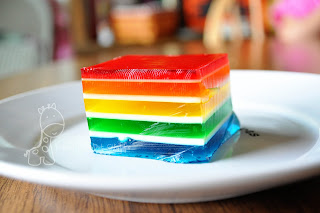The seasonal feature belongs to Funky Polkadot Giraffe for her rainbow jello. If only there was a pot of gold at the end of this rainbow…