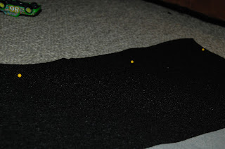 4) Then I flipped everything: the road I turned over so you couldn’t see the chalk marks and the town pieces I moved to the opposite side of the mat.