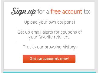 You have the option to sign up for a free account. This allows you to upload coupons, set up alerts for your favorite stores and retailers, and you can track your browsing history. Tracking your history is a pretty sweet feature. No mad searches for that code you saw the other day and now you need it. Just look it up.