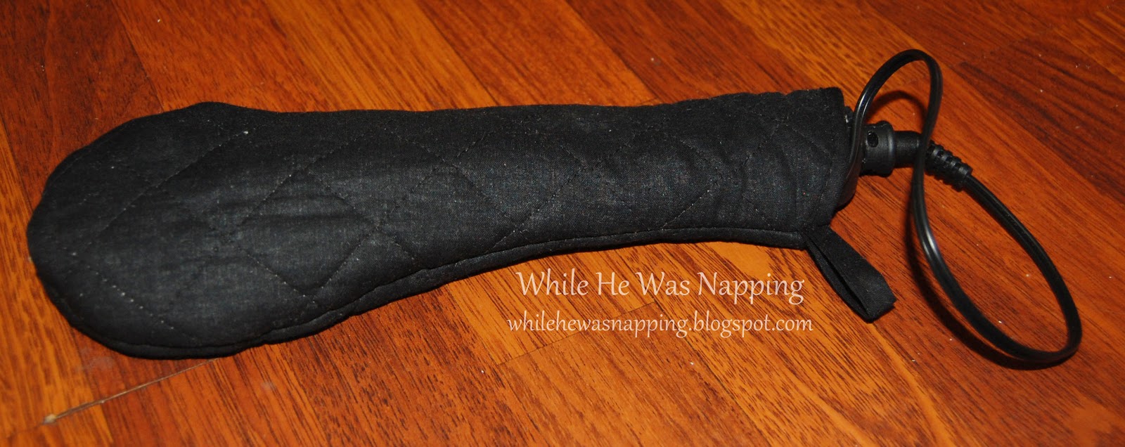 Little side note: I didn’t purposefully leave the sealed end of the mitt wider than the open end, but it worked out very nicely to have that little bump as a place to store the cord when you wrap it up to put it in your suitcase or whatever. It goes in even better than the last photo of this post shows, I just wanted you to be able to see that the iron was in the case.