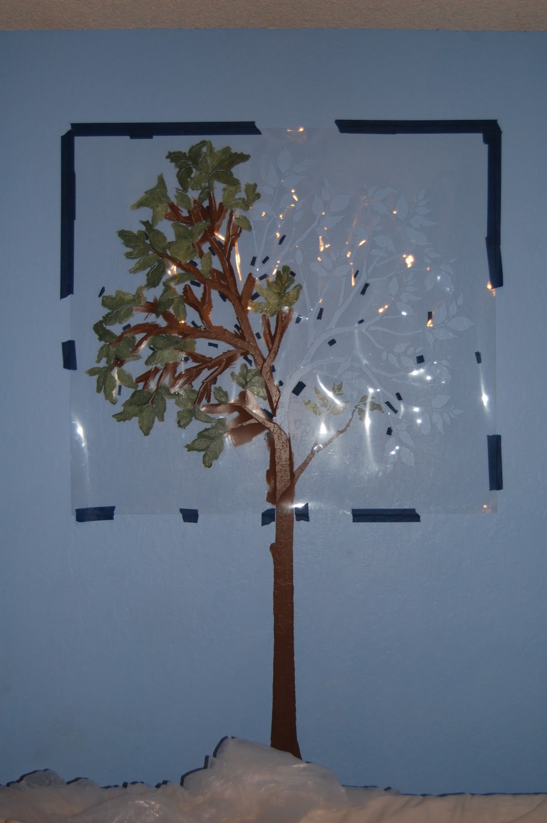 Overall, it was a pretty easy project. The results aren’t perfect and I will go back {eventually} and paint over the bridge gaps to make it a solid image. The leaves on the tree were awfully forgiving and I didn’t worry too much about seepage or drips under the stencil. We just call it ‘nature’s imperfection’. There are some places I will have to go back and clean up a little. But, if my OCD mother can deal with it, then I’d call it a success!