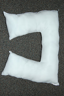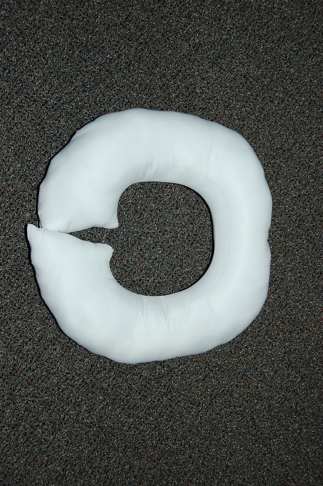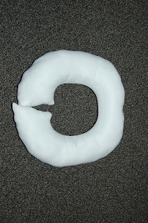 1. Cut one of the sides of your pillow open and pull out all the stuffings. Set aside, you’ll need it later. Decide what shape you want your supportive pillow to be. I made two pillows (what else was I supposed to do with the other pillow?), one was a donut-shape and the other was a blocky U-shape.