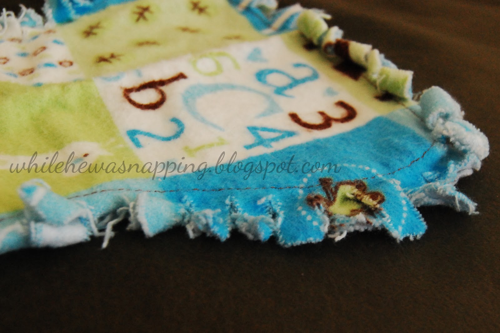 5. Take your scissors and snip all the way around the perimeter of the burp cloth. Don’t cut your seam! You can get as close as you dare, but if you cut the seam your whole burp cloth will start to fall apart. So, be careful.