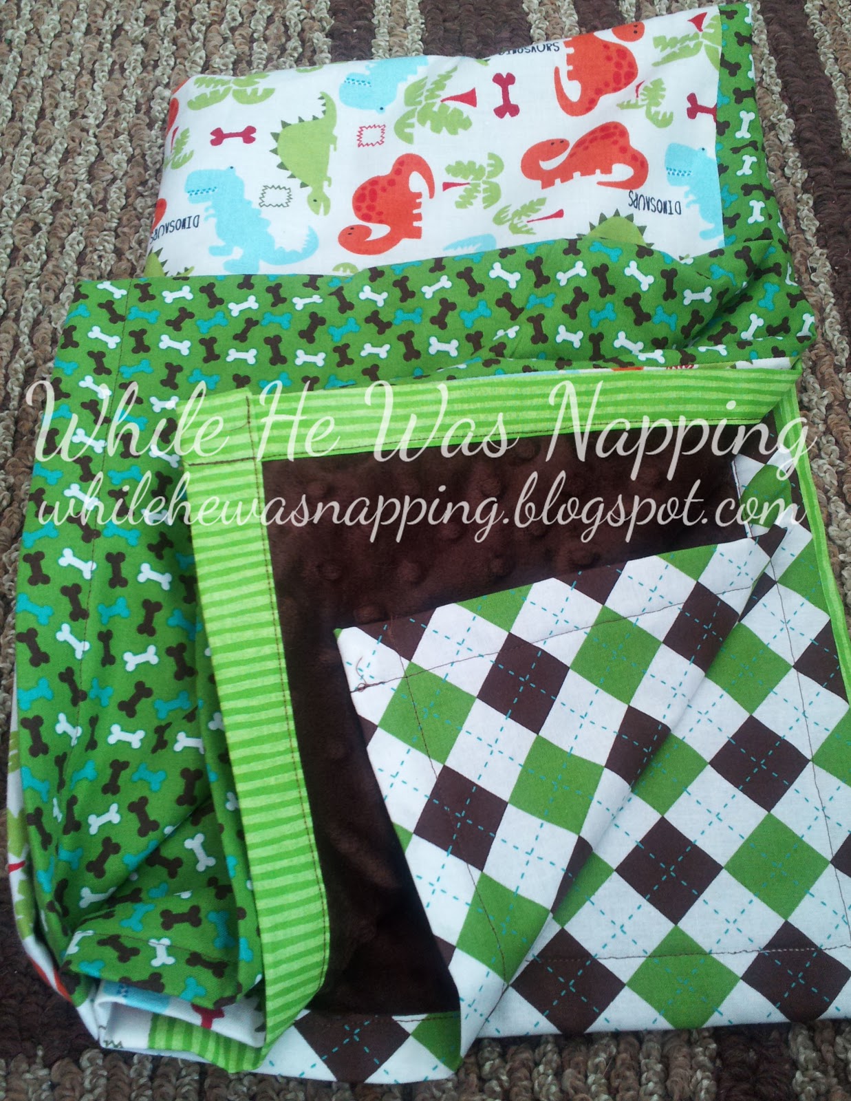I didn’t do any kind of quilting on this blanket.  I may have to go back and do that.  The back of the minky is pretty slick and I may need to do at least a few straight seams to help the blanket keep it’s shape.  If I do, I’ll update this.  You may want to go ahead and do that so you don’t have to re-visit this project again…  Just a though.