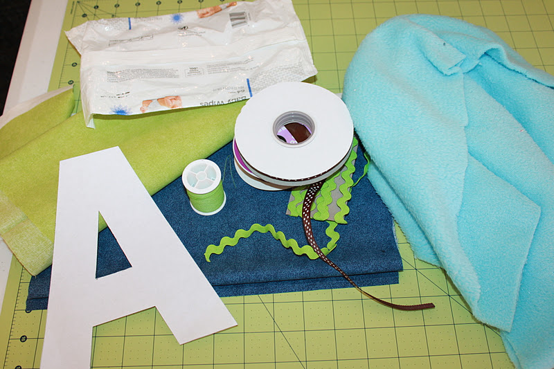 *Cotton Fabric measuring 8″ x 8″ (This is for your letter.  I chose lime green)