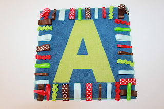 Our letter is now attached to our fabric.  Honestly, sewing around the letter is one of the trickiest parts of this project.